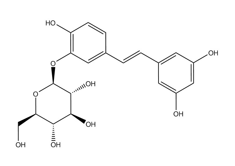 【英文別稱】 (2S,3R,4S,5S,6R)-2-(5-((E)-3,5-dihydroxystyryl)-2-hydroxyphenoxy)-6-(hydroxymethyl)tetrahydro-2H-pyran-3,4,5-triol
