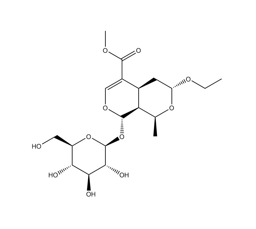 【英文別稱】 1H,3H-Pyrano[3,4-c]pyran-5-carboxylic acid, 3-ethoxy-8-(β-D-glucopyranosyloxy)-4,4a,8,8a-tetrahydro-1-methyl-, methyl ester, (1S,3R,4aS,8S,8aS)-