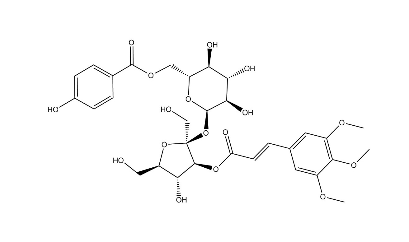 【英文別稱】 α-D-Glucopyranoside, 3-O-[(2E)-1-oxo-3-(3,4,5-trimethoxyphenyl)-2-propen-1-yl]-β-D-fructofuranosyl, 6-(4-hydroxybenzoate)