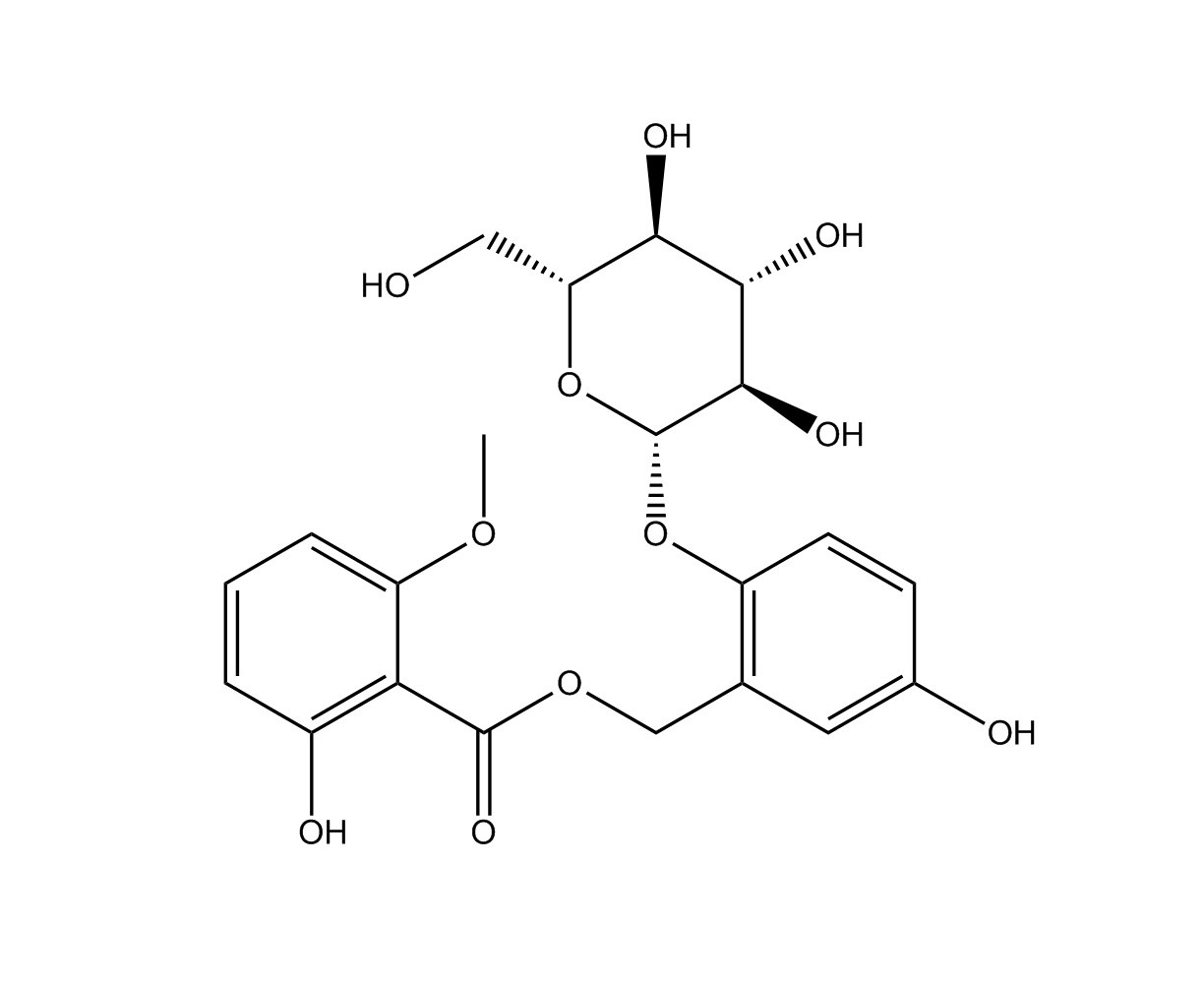 【英文別稱】 [5-hydroxy-2-[(2S,3R,4S,5S,6R)-3,4,5-trihydroxy-6-(hydroxymethyl)oxan-2-yl]oxyphenyl]methyl 2-hydroxy-6-methoxybenzoate