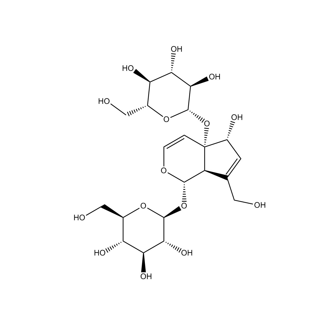 【英文別稱】 (2S,3R,4S,5S,6R)-2-[[(1aS,1bS,2S,5aR,6S,6aS)-6-hydroxy-1a-(hydroxymethyl)-2,4,5,5a,6,6a-hexahydro-1bH-oxireno[5,6]cyclopenta[1,3-c]pyran-2-yl]oxy]-6-(hydroxymethyl)oxane-3,4,5-triol