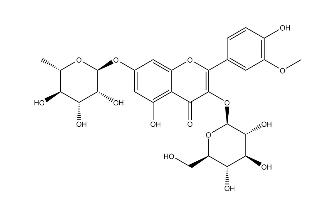 【英文別稱】 2-(3,4-dimethoxyphenyl)-5-hydroxy-3-[(2S,3R,4S,5S,6R)-3,4,5-trihydroxy-6-(hydroxymethyl)oxan-2-yl]oxy-7-[(2S,3R,4R,5R,6S)-3,4,5-trihydroxy-6-methyloxan-2-yl]oxychromen-4-one